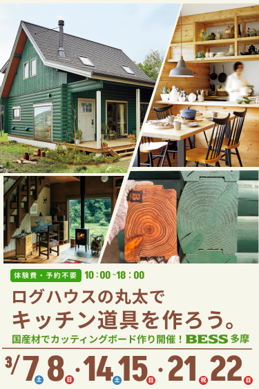 “家になる木”に触れる、ちょっと特別なひとときをご用意しました。ログハウスづくりから生まれた丸太を活かして、さあ春のDIYを楽しもう。