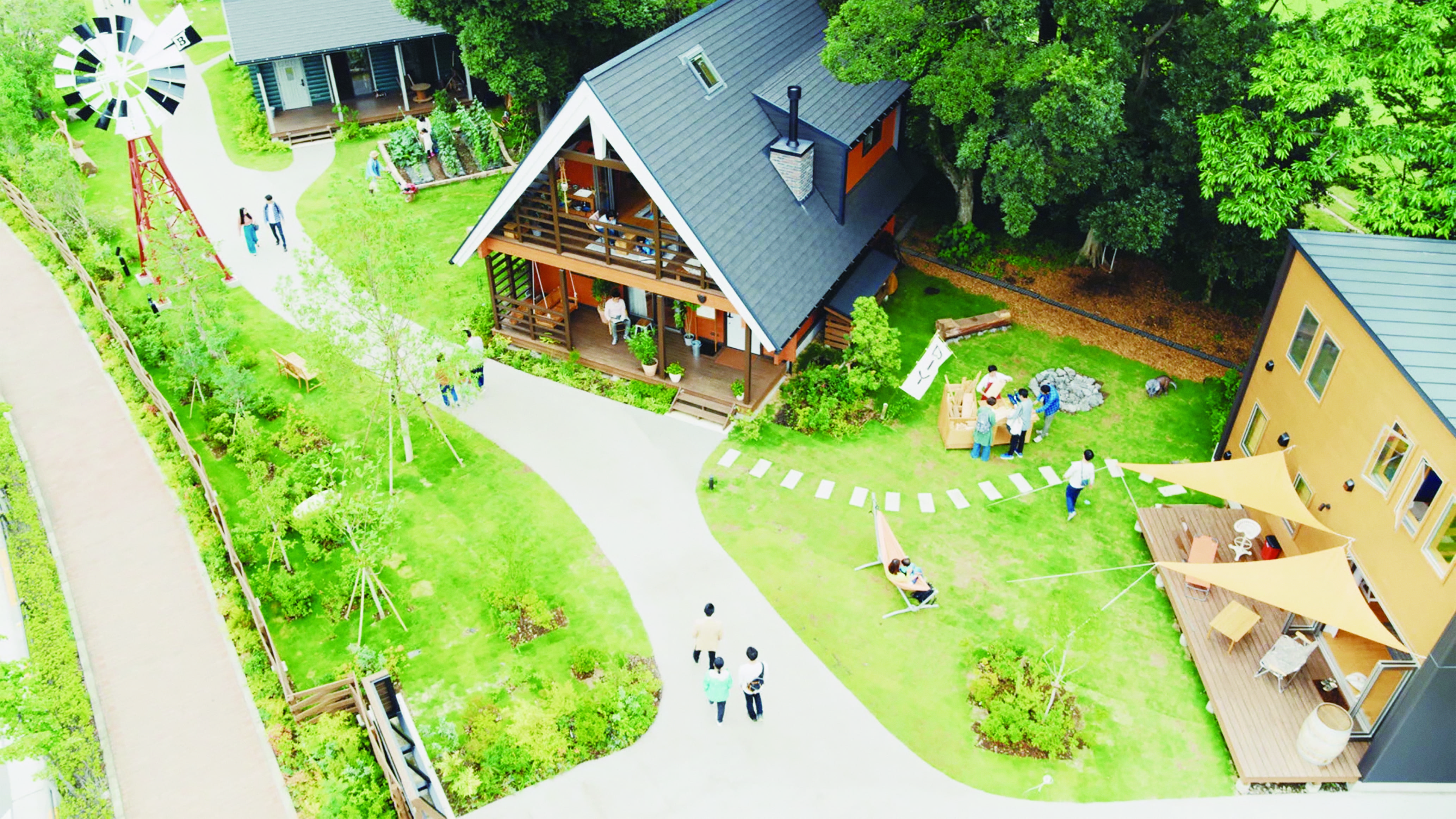 ログハウスや個性豊かな木の家が建ち並ぶBESSの展示場。