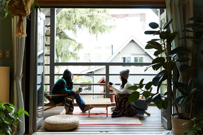土間やウッドデッキで春風にあたりながら作業したり、室内でゆったり木のぬくもりを感じたり。