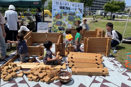 大きなログ積み木で想像力を膨らませたり、青空のしたハンモックで本を読んだり。大人も子どもも楽しく、木と触れ合ってみませんか?