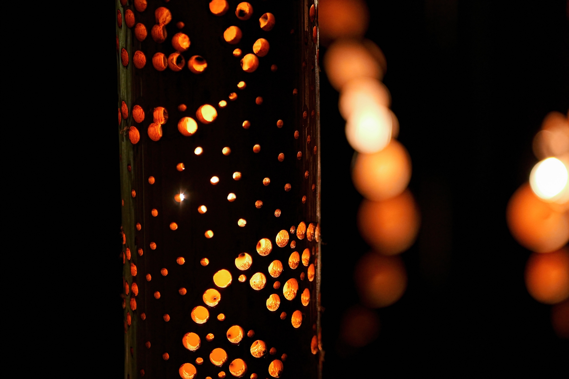 竹を切り、模様を描いて、あかりを灯す。
