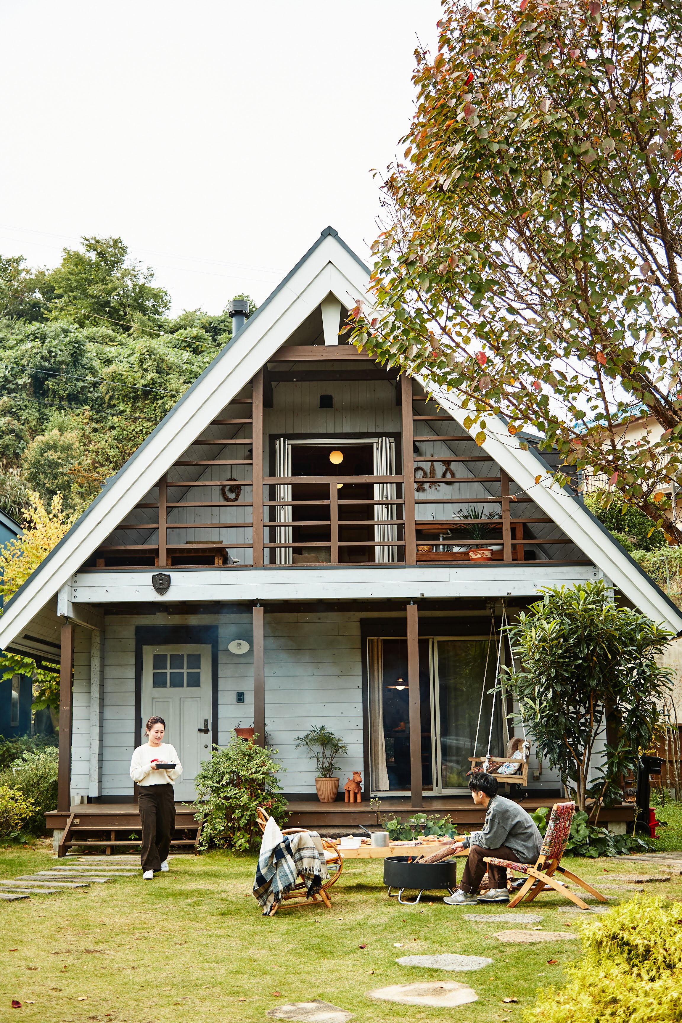 ログハウスをはじめとした個性的な木の家が立ち並び、