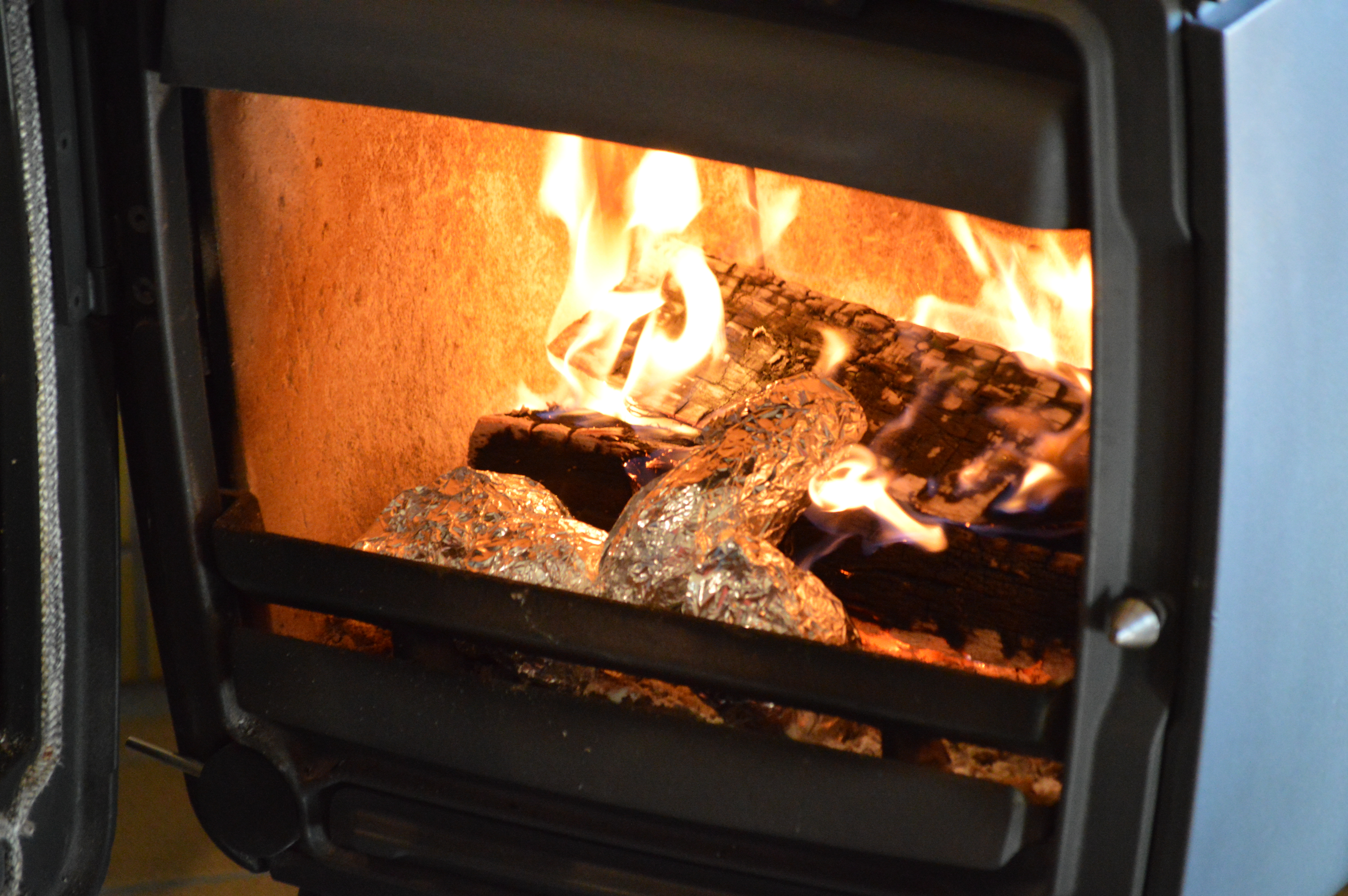 薪ストーブでじっくり火を入れた