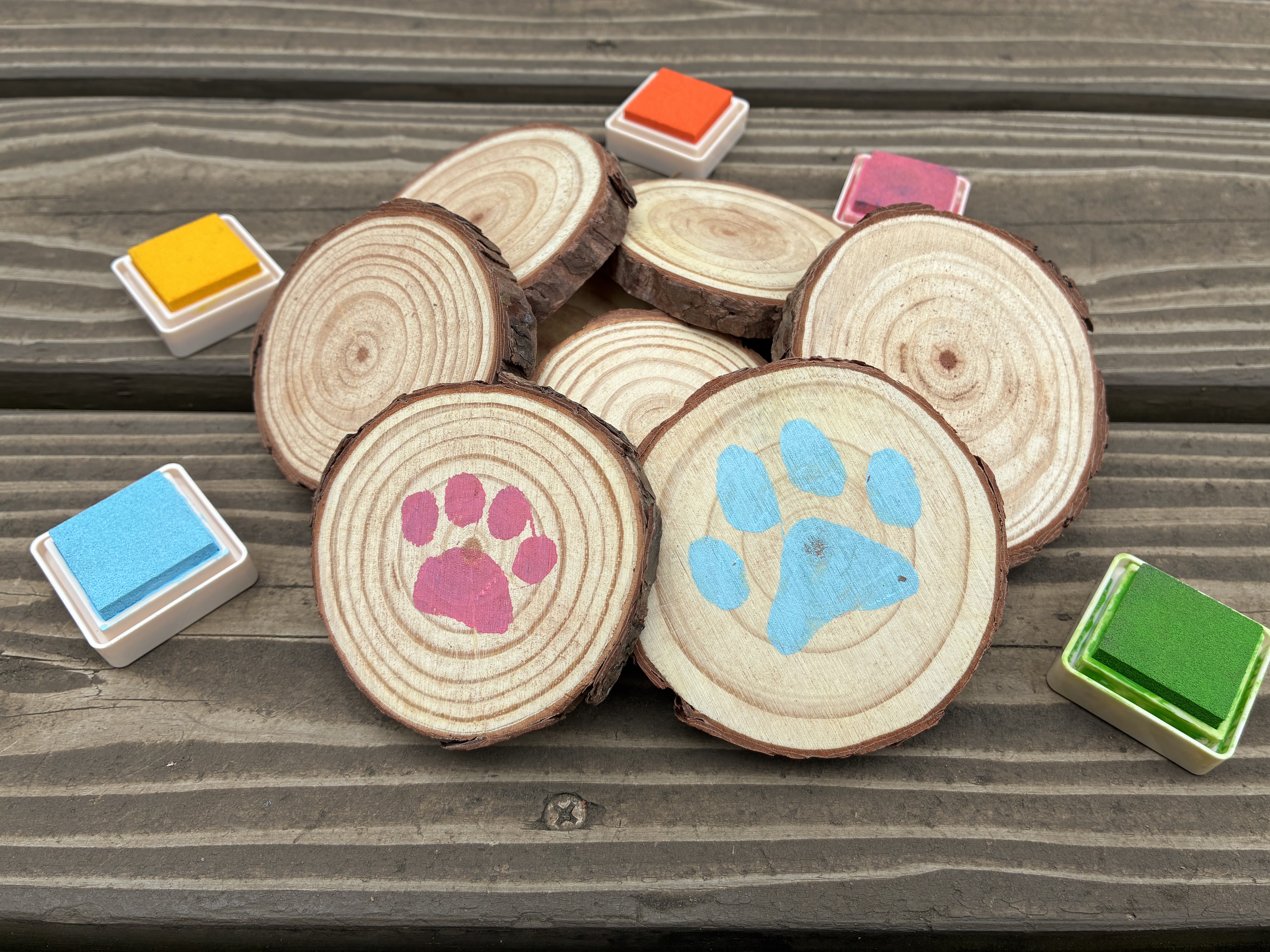 木のコースターに肉球でスタンプを捺して、世界にひとつだけの愛犬グッズ作りを楽しめます。